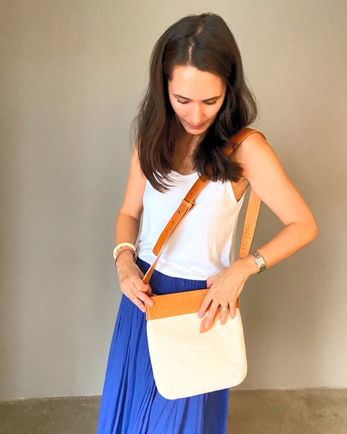 Crafted from thick, durable canvas with refined natural leather accents, Joséphine is all about balance. Her proportions are just right, spacious enough for your daily essentials (phone, wallet, keys, sunglasses, lip balm, even a small notebook) yet never oversized to weigh you down or overwhelm your silhouette.